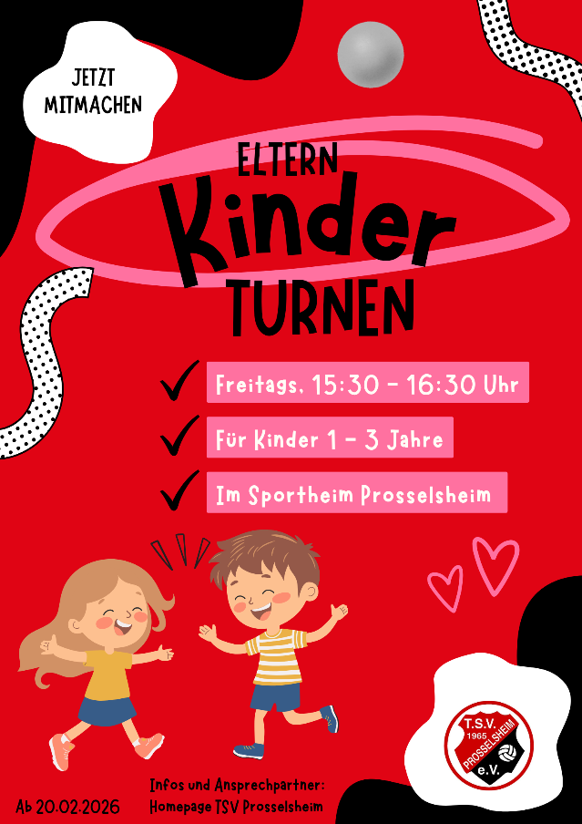 Im Sportheim Prosselsheim. Immer freitags 15:30 – 16:30 Uhr für Kinder von 1 – 3 Jahren.